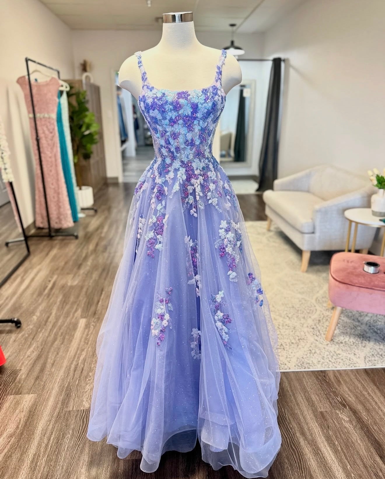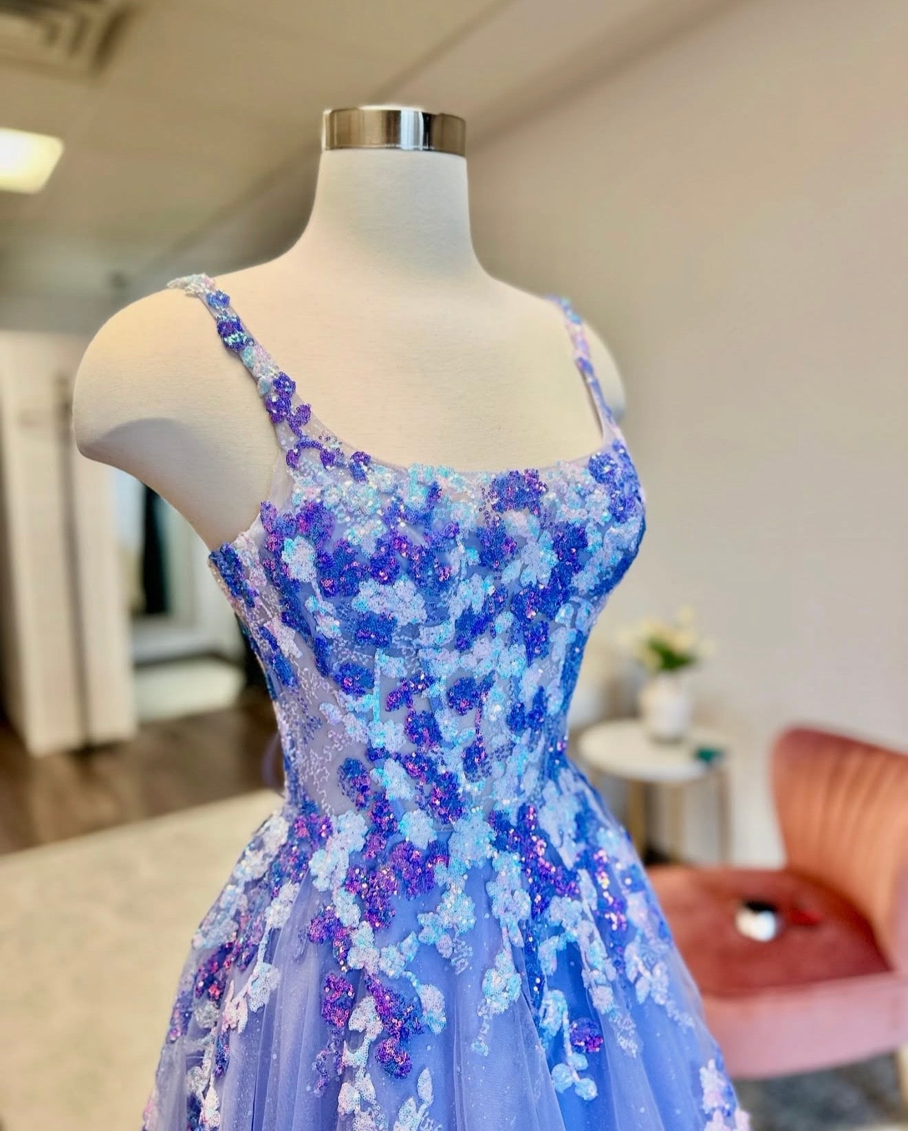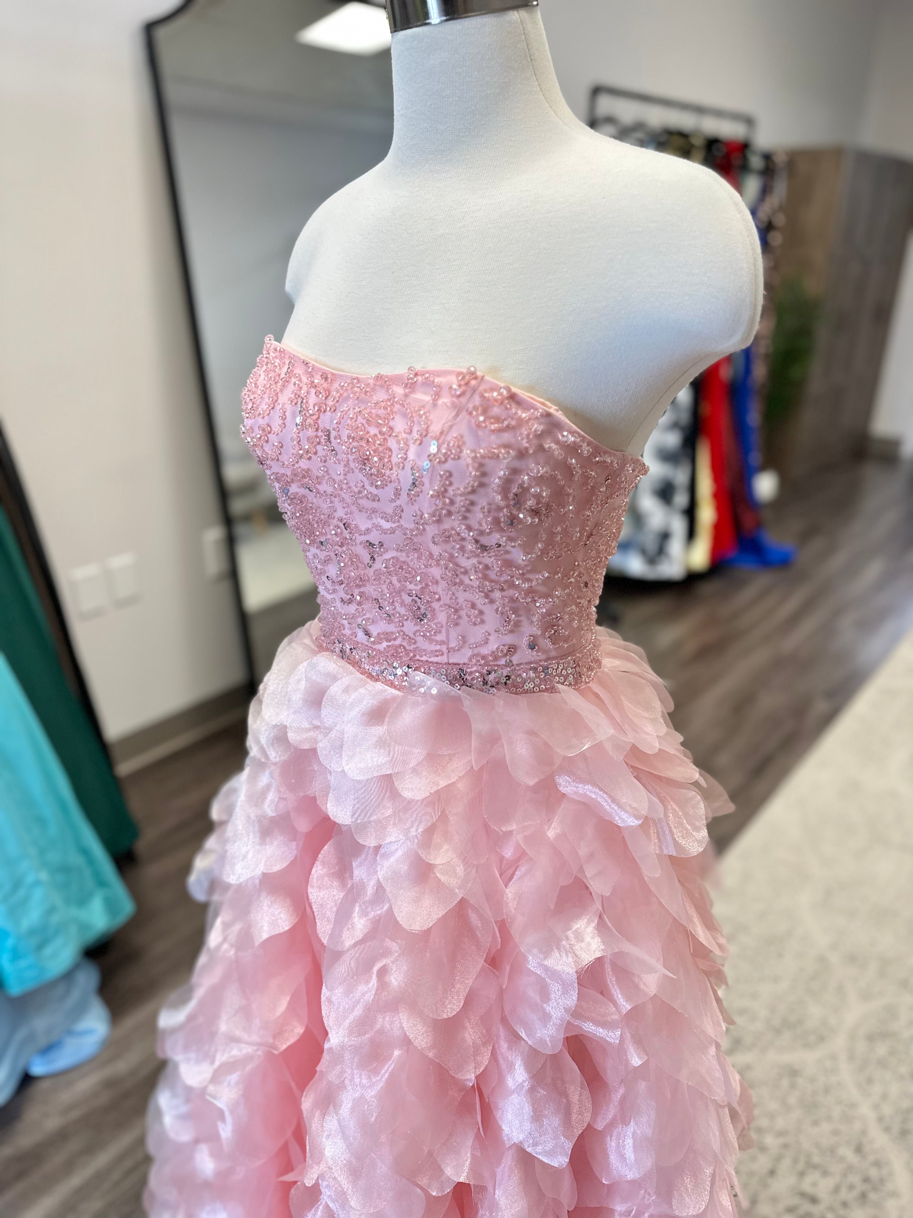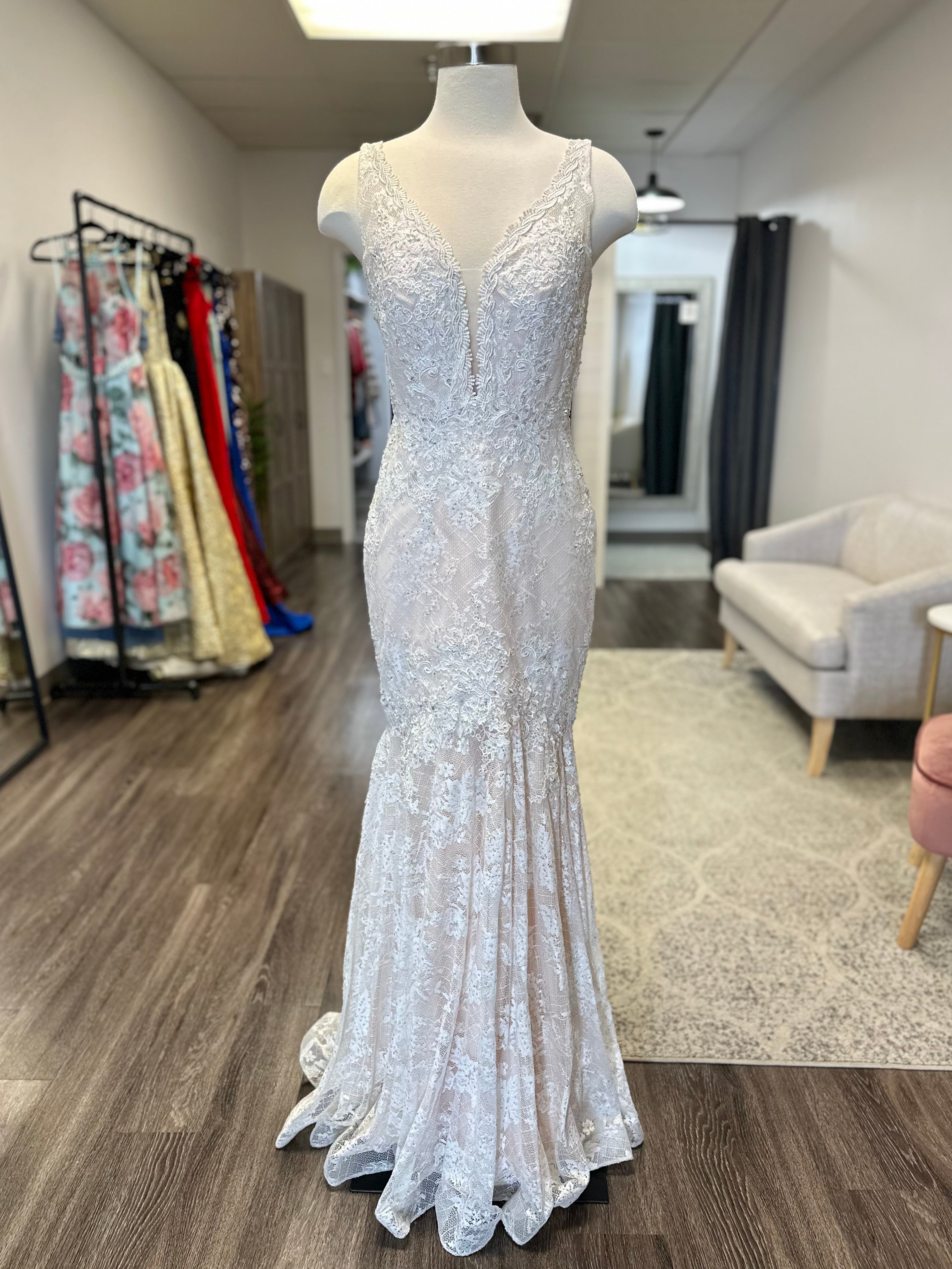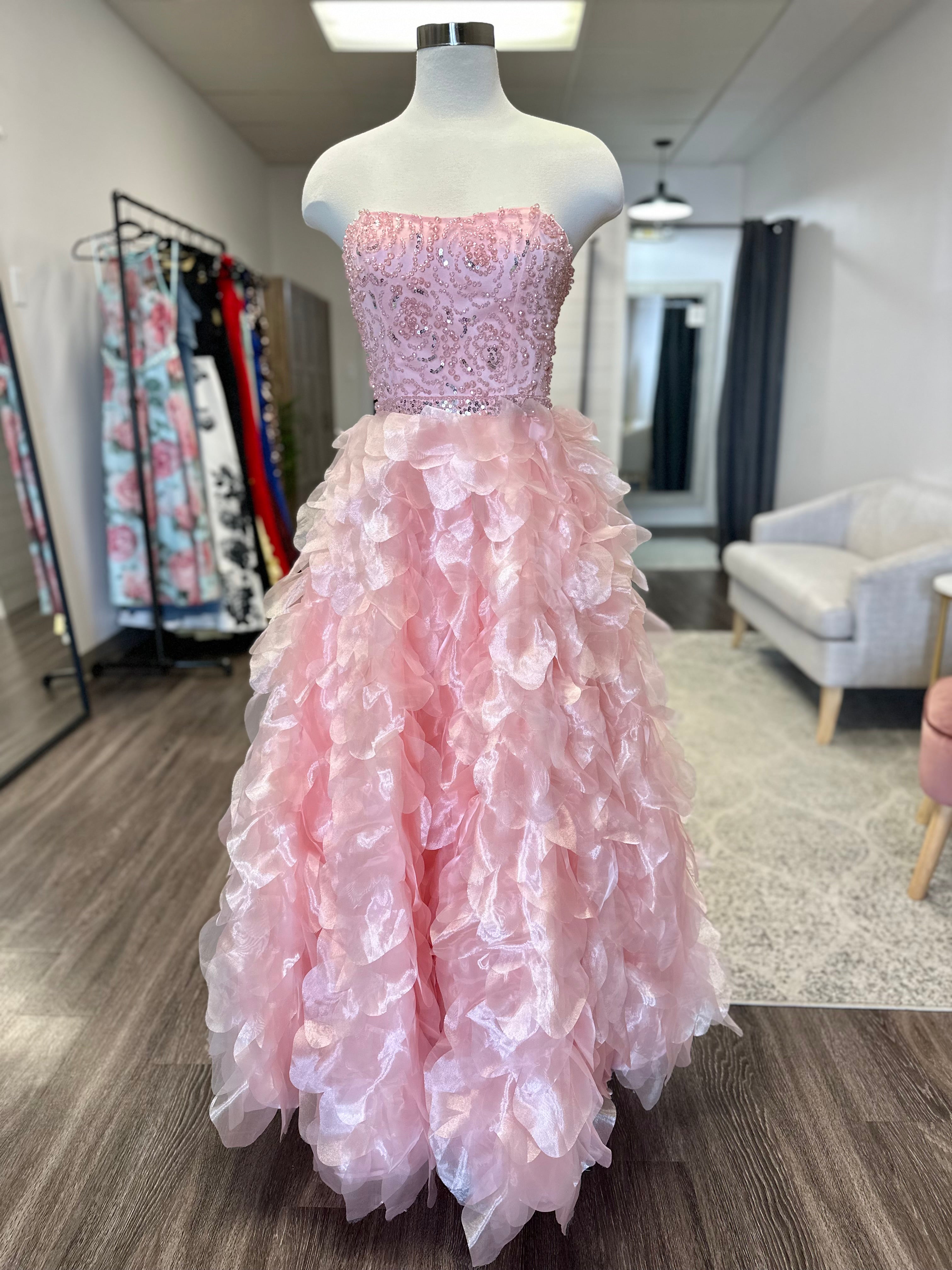 Prom dresses are available to shop in store only during business hours. We have a special space designated to our prom dresses where you will have a private experience looking at and trying on dresses. Dress sizes will vary each year depending on what comes in. Typically our sizes range from 0-14. The smallest size we have had is a 00 and the largest size has been a 22.